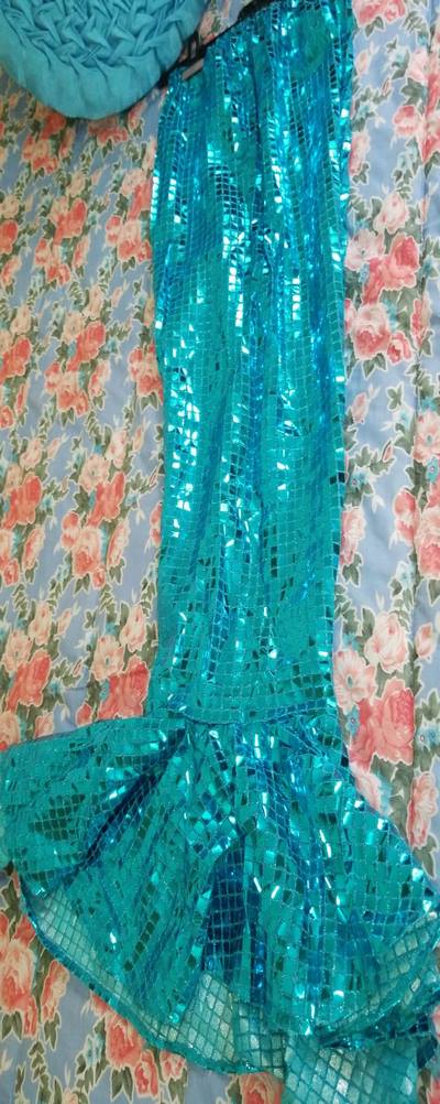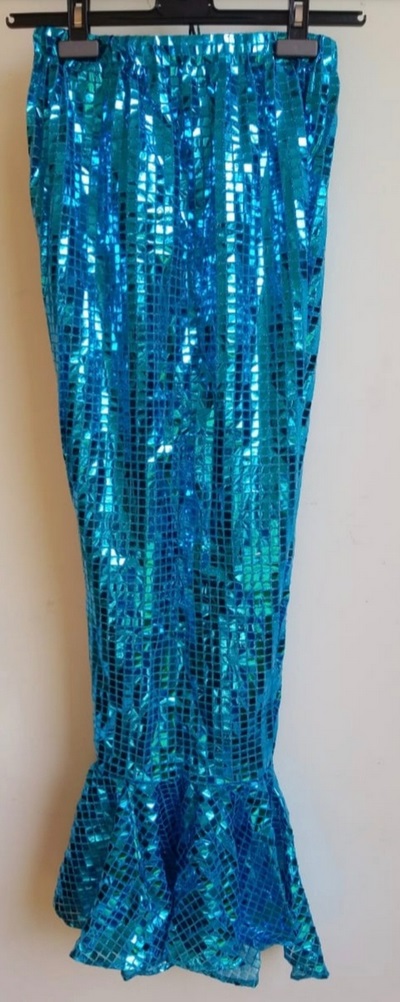 Pour ma part, il s’agissait du célèbre conte « La Petite Sirène » que j’avais choisi de mettre en scène de la manière suivante : des guirlandes lumineuses bleutées étaient accrochées au tableau, un grand plaid représentant « Arielle », la petite sirène de Disney, avait été disposé sur le sol de manière à y accueillir les petits groupes successifs. Pour le costume, il avait été confectionné suivant mon dessin et mon choix de tissu, une perruque rouge vif venait compléter le tableau. Ainsi métamorphosée, plus aucun enfant, parmi les plus petits, ne me reconnaissait ! Certains s’approchaient pour toucher ce costume dont les paillettes turquoise reflétaient la lumière.