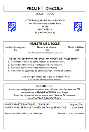 Il s’inscrivait dans les objectifs fixés par le « Projet d’école » du Lycée français Antoine et Consuelo de Saint-Exupéry » à San Salvador (El Salvador) en 2009.